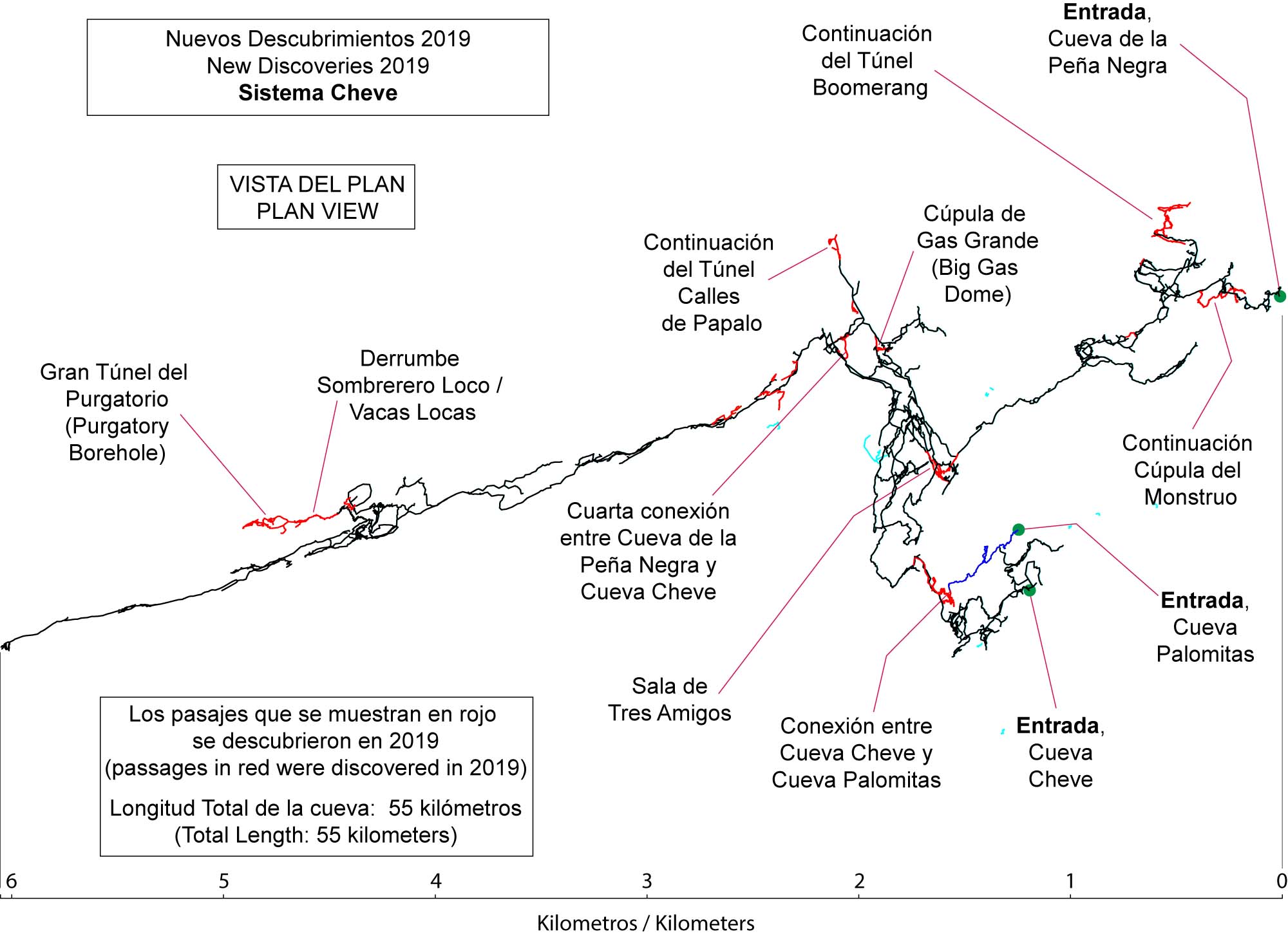Sistema Cheve new discoveries in 2019 (plan view)