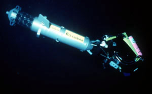 location, is marked with a neutrally buoyant cylinder wrapped with